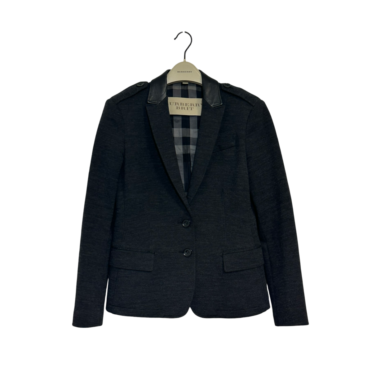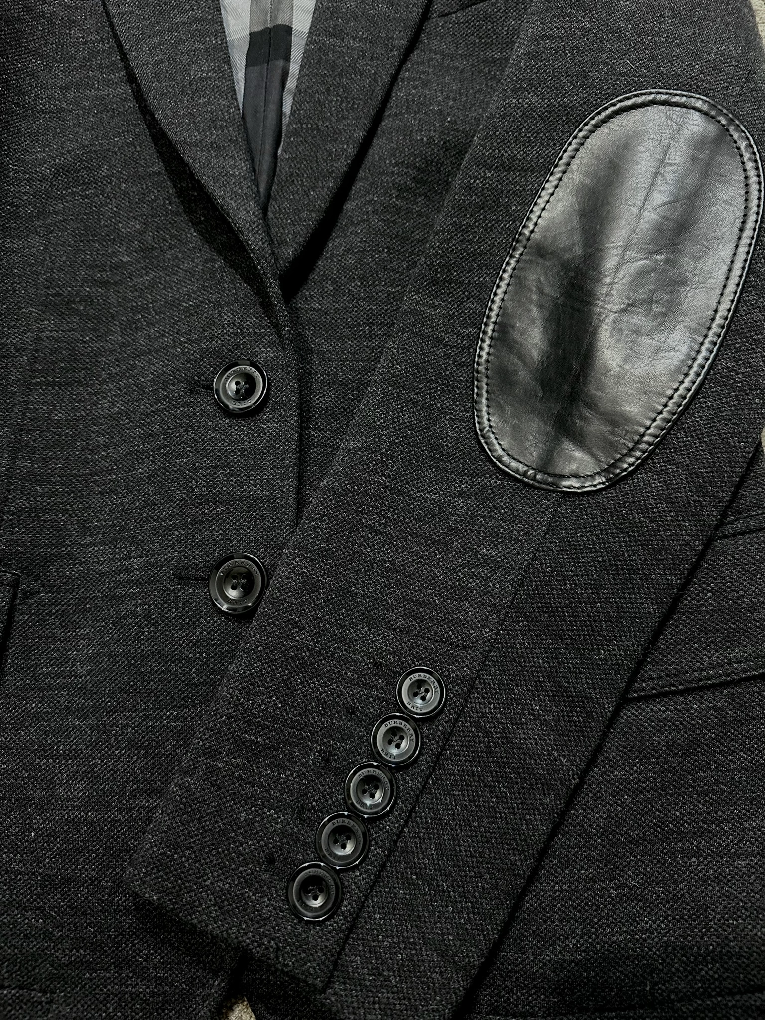 Leather-paneled wool-blend blazer